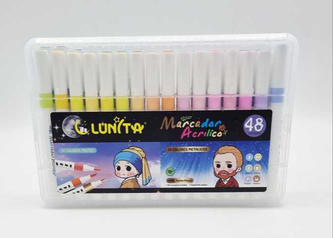 PLUMINES ACRÍLICOS METÁLICOS LUNITA, BASE DE AGUA, 48 PIEZAS